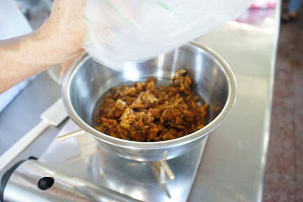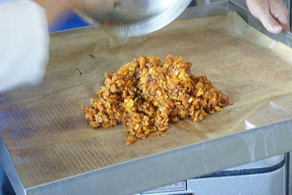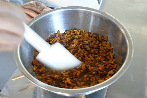 將糖水加熱之後,放入芒果乾加熱~芒果乾的香味馬上就傳到了賣場裡~