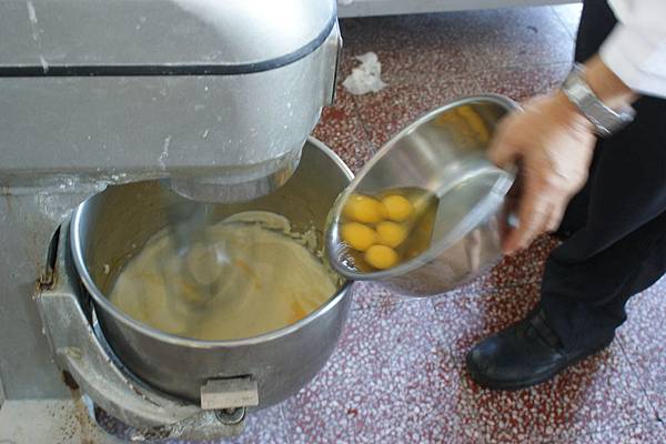 將蛋分4至5次加入~一定要慢慢加入唷,不然會吃不進去,因為蛋有70%都是水,材料是油,容易油水分離,所以必須要慢慢分次加入!