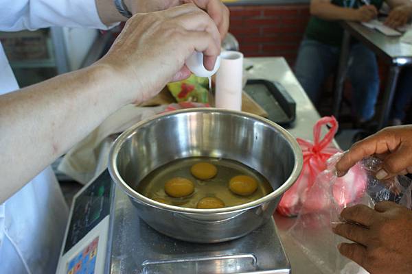 將蛋的重量秤好,切記!蛋的重量是去掉蛋殼的重量唷,所以在買蛋的時候必須在多買幾顆!