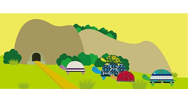 記憶中,應該是要先穿過六個隧道的。第一次從外界走進故鄉,一切景物對五隻小烏龜來說都這麼新奇有趣。六個隧道漆黑陰涼,但是,夏天走進來卻讓他們都感到非常舒服。